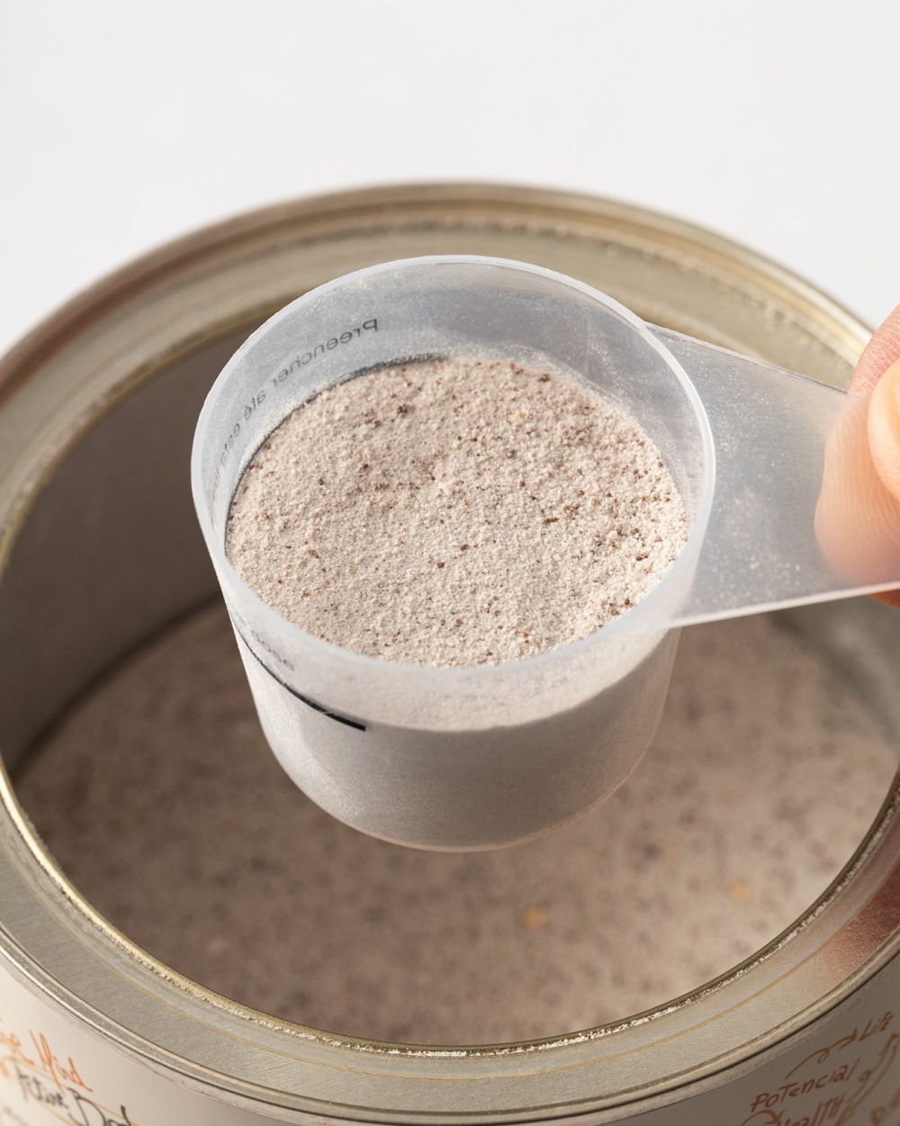 Adicione 1 colher-medida conforme marcação em 100ml de água quente ou, para deixar a sua textura ainda mais aveludada, misture com leite ou a bebida vegetal da sua preferência.
